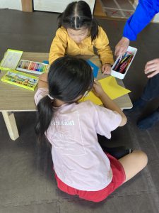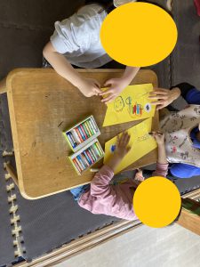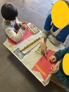 制作中に熱中して表と裏の両面描きたがる子もいて、どんどん体にいろんなデコレーションが増えていく様子が、見ていて非常に楽しかったです!