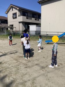 公園での活動では転がしドッヂボールに、今月から仲間入りしたスタッフも参加し、精一杯体を動かしました!(^^)!