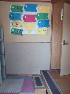 こどもの日に合わせて玄関スペースを華やかにするため、こいのぼりを作成しました。