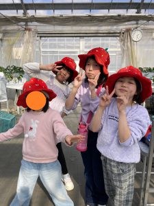 記念撮影用のいちご帽子を被って、撮影タイムになりました♪